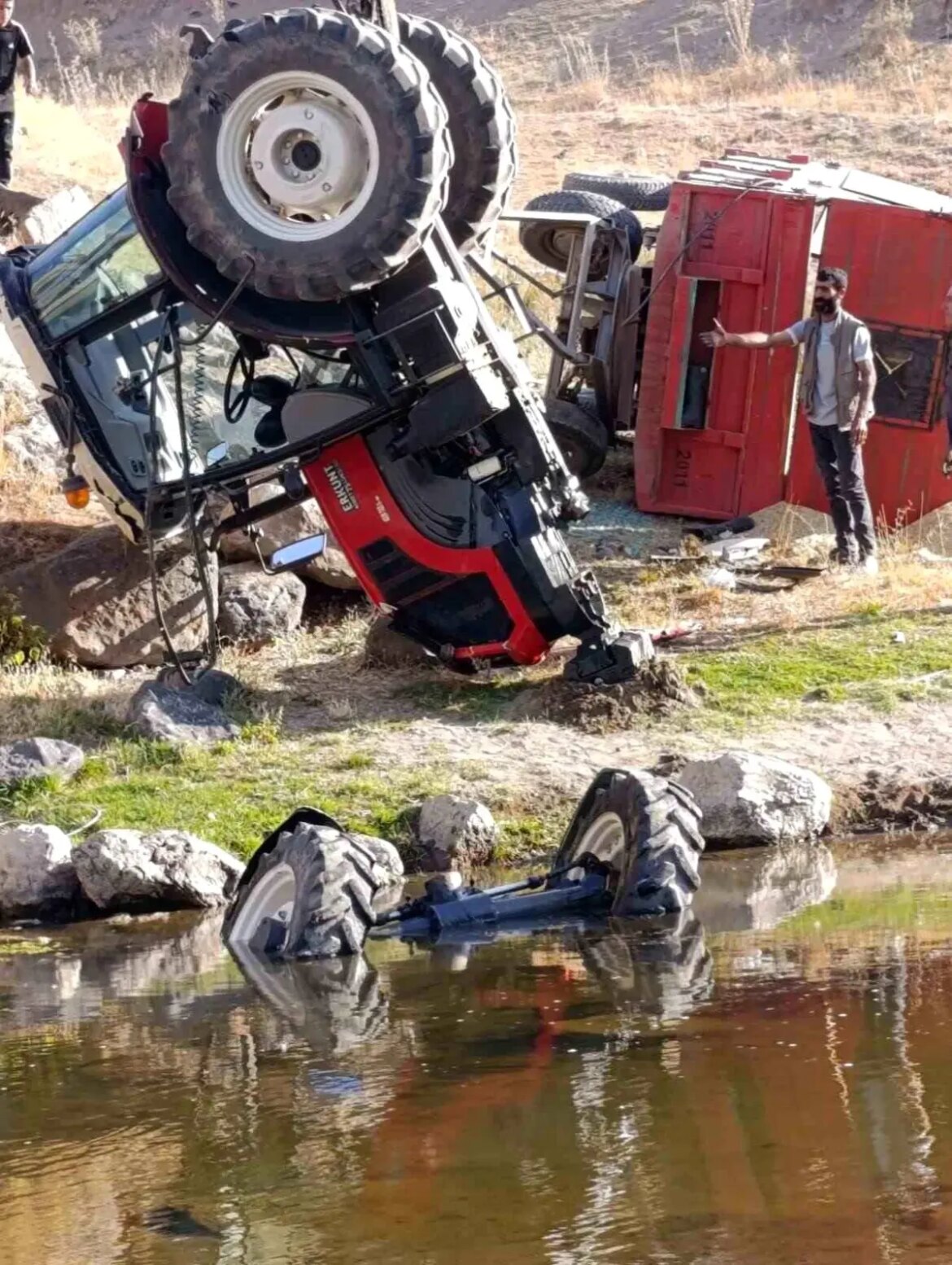 Edinilen bilgilere göre, Baştarla köyünden Patnos istikametine doğru seyreden arpa yüklü traktör, Değirmendüzü Sodalısu mevkii yakınlarında bulunan köprünün yanında park edildi. Traktör sürücüsü ve yanındaki kişi, su içmek için dere kenarına indikleri sırada traktör bir anda hareket ederek dereye yuvarlandı.