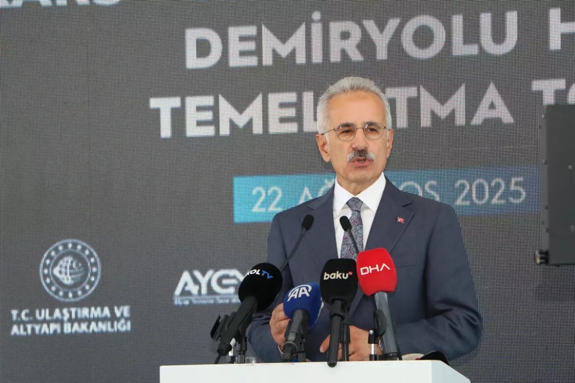 “Özellikle dünyadaki son siyasi gelişmeler de ülkemizin kilit noktasını teşkil ettiği ‘Orta Koridor’un stratejik önemini bir kez daha ortaya koymuştur. Bu noktada, Orta Koridor’un geliştirilmesi kapsamında, Marmaray, Bakü-Tiflis-Kars Demiryolu, Avrasya Tüneli, Yavuz Sultan Selim, Osmangazi ve 1915 Çanakkale Köprüleri gibi mega projeleri hayata geçirdik ve yeni proaktif projelerimize de devam ediyoruz. Bugün, sadece bir demir yolu hattının temelini atmıyoruz; Türkiye, Azerbaycan ve Ermenistan’ı birleştiren bir köprünün, Çin’den Avrupa’ya uzanan Asya ile Avrupa arasındaki sosyoekonomik ilişkileri daha da pekiştirecek çelikten bir uluslararası bağın yapımına başlıyoruz. Bildiğiniz üzere ulaşım, medeniyetlerin buluşma noktası, milletlerin birleşme köprüsü ve ekonomilerin can damarıdır. Kalkınma, birlik ve kültür yolculuğunun anahtarıdır. Demir yolları da bu yolculuğun güçlü, çevreci ve ekonomik rotalarından biridir. Bu gerçekten hareketle Cumhurbaşkanımız Sayın Recep Tayyip Erdoğan’ın liderliğinde, 2002 yılından bu yana demir yollarımızı bir devlet politikası olarak ele aldık ve öncelikli sektörlerden biri olarak belirledik. Demir yolu hatlarımızın limanlara, organize sanayi bölgelerine, lojistik merkezlere bağlantısını sağlayarak demir yollarımızı kombine taşımacılığa uygun yeni bir anlayışla ele aldık. Projelerimizle sadece doğu-batı hattında değil, kuzey-güney kıyılarımız arasında da demir yolu ulaşımını ekonomiye katkı sağlar hale getirmeyi planladık. Mevcut hatlarımızın modernizasyonuna devam ediyoruz. Son 23 yılda demir yollarımıza yaklaşık 64 milyar dolar yatırım gerçekleştirdik. 2002 yılında yaklaşık 11 bin kilometre olan demir yolu uzunluğumuza, 2025 yılı itibarıyla, 2 bin 251 kilometresi YHT ve hızlı tren hattı olmak üzere yaklaşık 3 bin kilometre ekledik. Demir yolu ağı uzunluğumuzu 13 bin 919 kilometreye yükselttik. Marmaray ve Bakü-Tiflis-Kars Demiryolları Hattı gibi vizyon projelerle, Türkiye‘yi Asya’dan Avrupa’ya uzanan Demir İpek Yolu’nun merkezi yaptık. Hayata geçirdiğimiz bu iki proaktif projeyle demir yolu taşımacılığı alanında ülkemizin doğu-batı yönlü uluslararası yük hareketlerinde üstlendiği kritik rol ülkemizin lojistik gücüne güç kattı.”