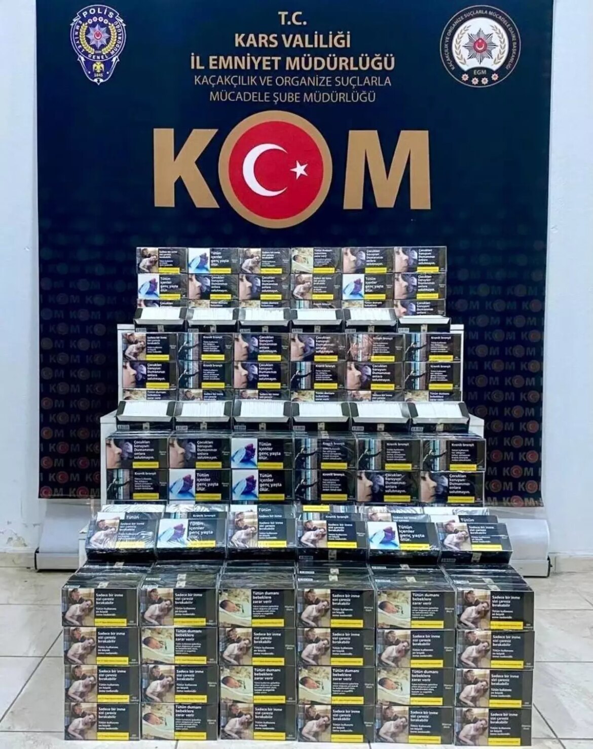 Kars’ta düzenlenen operasyonda 100 bin boş, 21 bin 760 dolu makaron ele geçirildi.